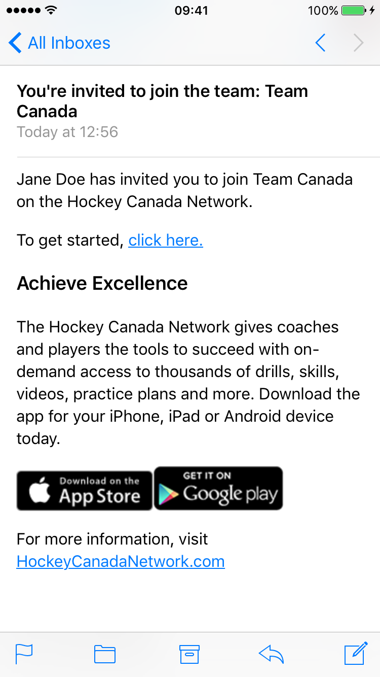 Once a team member has invited you, you will receive an email with a link. Tap on "Click here."