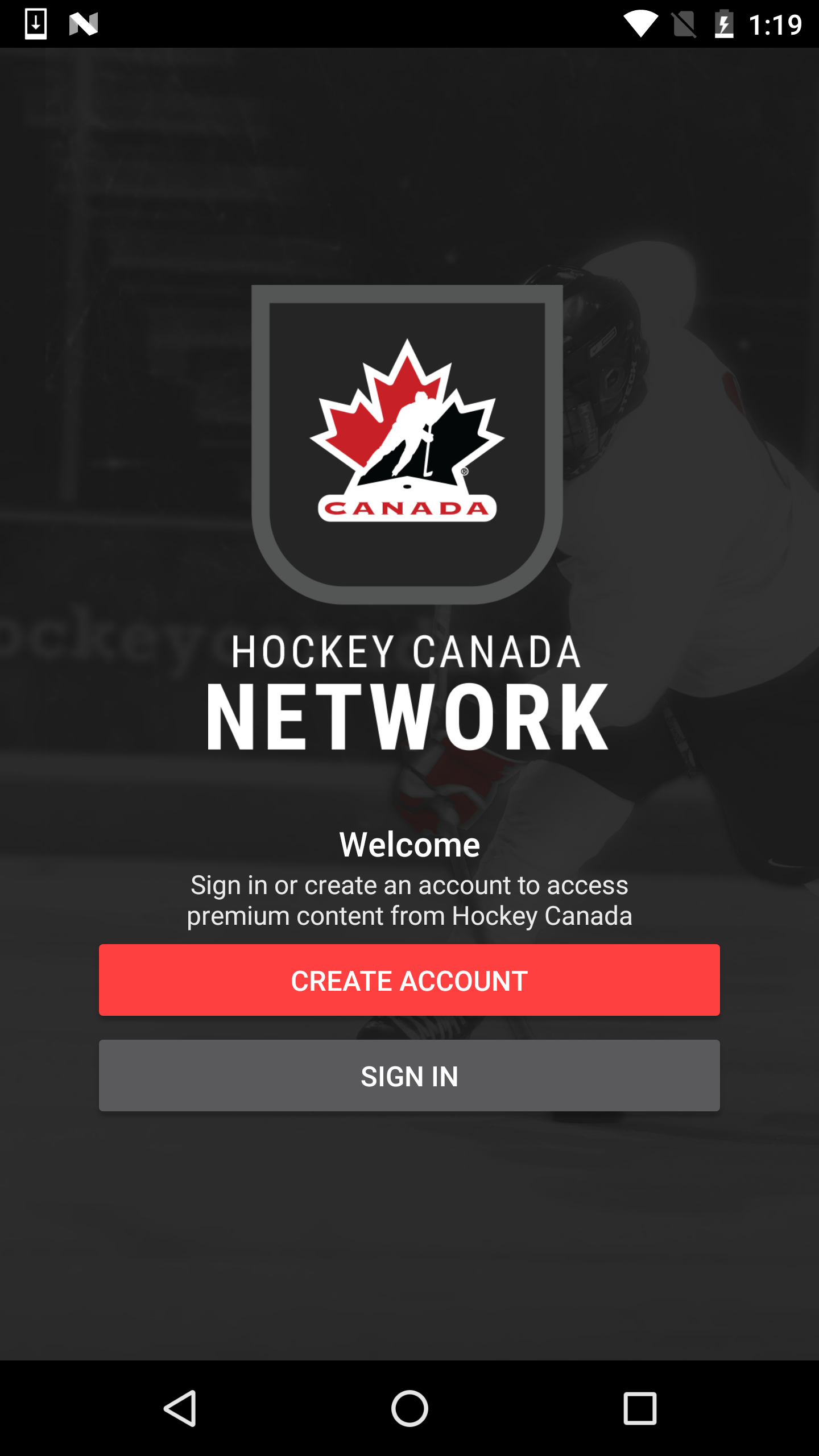Ouvrez l'application Hockey Canada Network sur votre appareil. Si vous avez besoin d'aide pour télécharger l'application, veuillez consulter notre article sur comment télécharger l'application.
